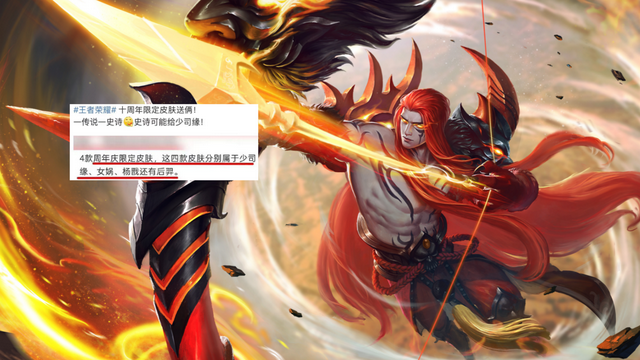 由于去年周年庆期间官方在赠送的那款皮肤上面是以传说品质进行的,所以今年玩家能看到的周年庆免费皮肤,显然是依旧会有传说。而这款免费的传说按照透露来看,则明显是会被杨戬给拿下,当然还有款少司缘的史诗也是免费。